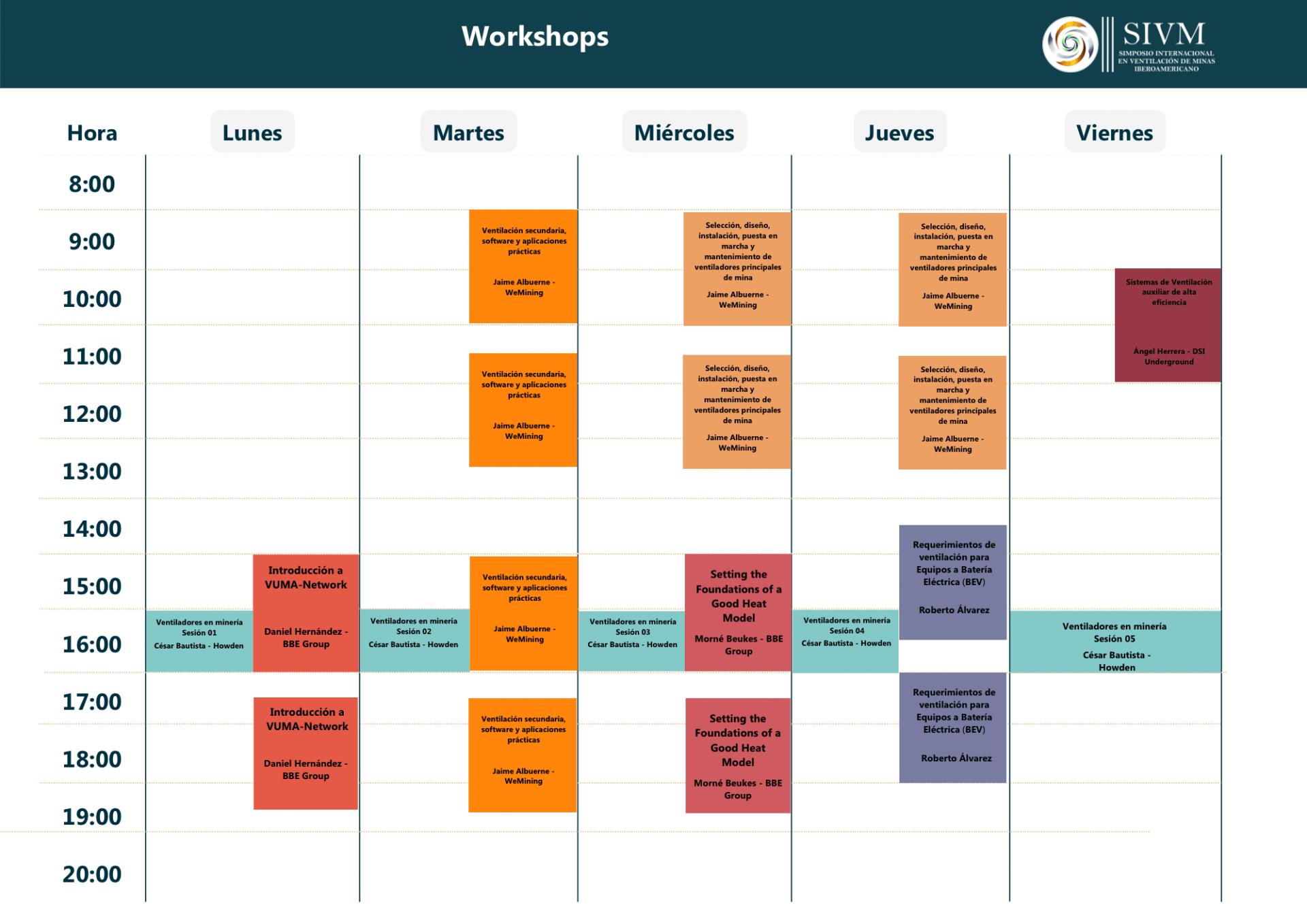 Este workshop presenta el software VUMA-Network y brinda las habilidades básicas de navegación, construcción/importación de modelos y enseña a cómo resolver redes de ventilación y refrigeración de minas.